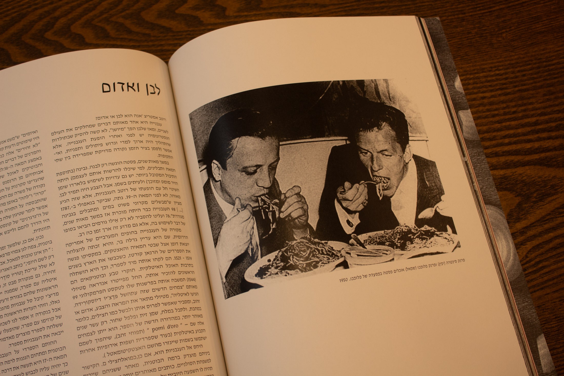 I curated a collection of rare archival images featuring both industrial pasta production and celebrities caught in 'clumsy' moments of consumption. This juxtaposition highlights pasta as the ultimate social equalizer: a high-culture staple that defies 'classy' etiquette. To bring these rare, low-resolution archives to a large-scale print format, I utilized AI upscaling and Photoshop restoration. This allowed me to significantly enhance image quality, ensuring every detail was sharp enough to accommodate the book's custom dimensions and full-bleed layouts."
